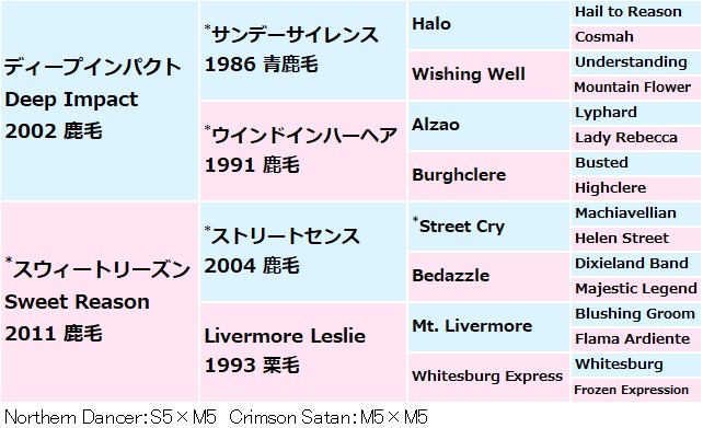 甥のディアスティマは5勝。札幌日経オープン -L、松籟S、グッドラックH、目黒記念-G22着,日経賞-G23着,京成杯-G33着。