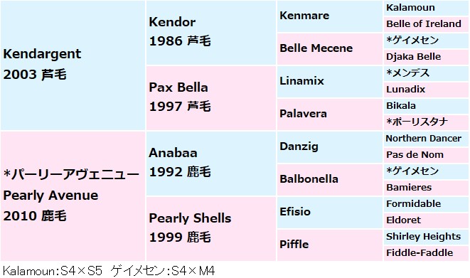 祖母パーリーシェルズはヴェルメイユ賞 -G1、マルレ賞-G2、ノネット賞-G3。