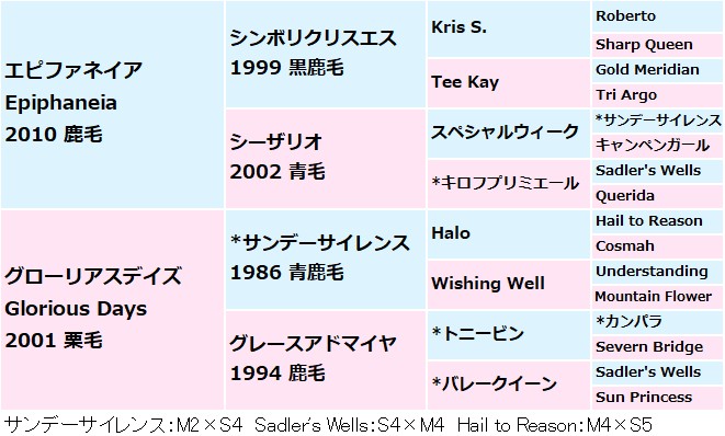 母グローリアスデイズはフローラS-JPN22着,ローズS-JPN22着,忘れな草賞-OP3着。